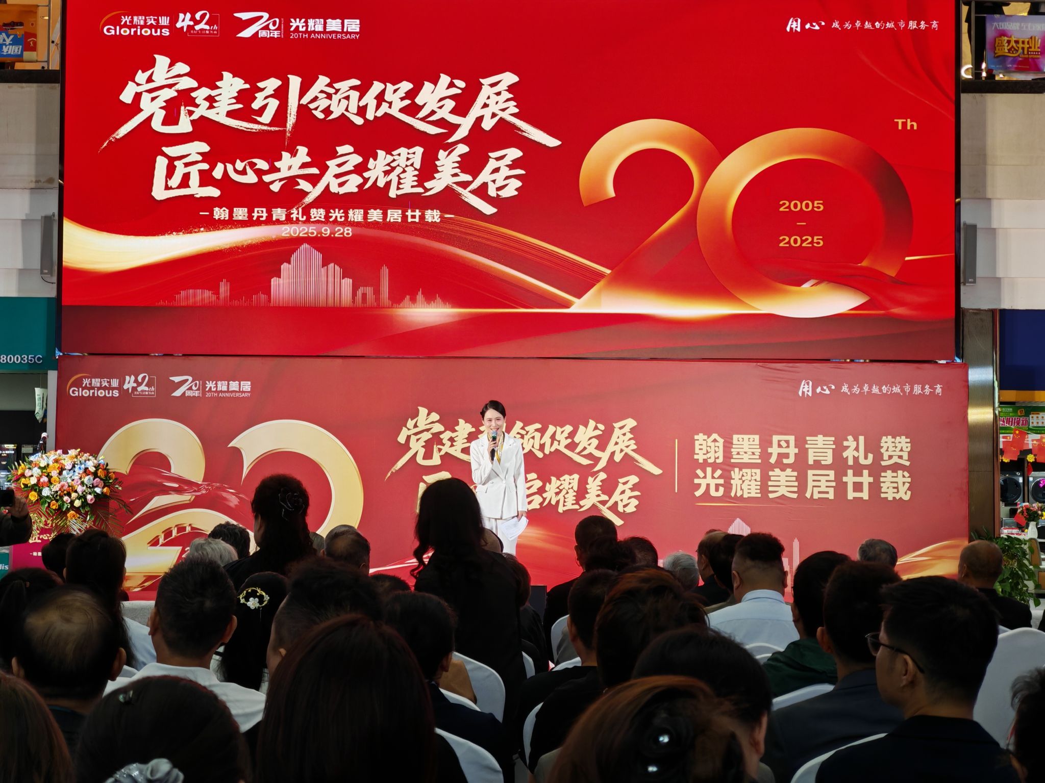 活动伊始,部门教职工受邀参加“‘党建引领促发展·匠心共启耀美居’翰墨丹青礼赞光耀美居廿载”庆典活动开幕式。学支中心高世民老师向光耀集团赠送书法作品。
