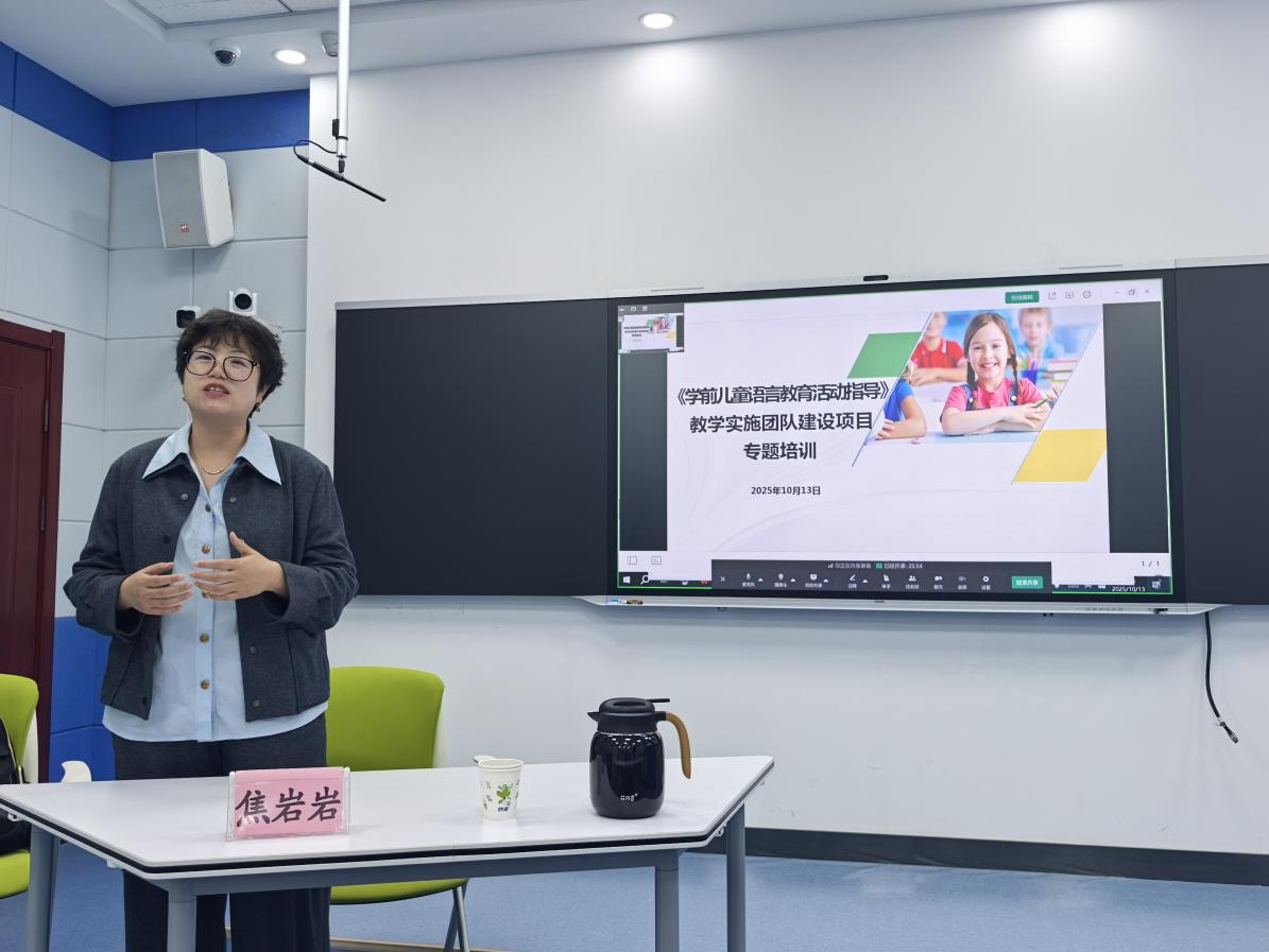 此次讲座特邀宁夏大学教师教育学院副院长焦岩岩担任主讲。焦院长围绕学前儿童语言教育的最新发展趋势,从三个维度系统展开讲解:一是以语言教育知情理论为指导重构学前儿童语言教育的整体内容;二是以完整阅读教育理论关照学前儿童口头语言与书面语言教育有效衔接的过程;三是以生态语言系统理论构建学前儿童语言教育的整合系统环境。讲座过程中,焦院长结合理论阐述、案例分析与视频展示,将抽象理论转化为可操作的教学策略,帮助参会教师深入理解学前儿童语言教育的前沿动态。
