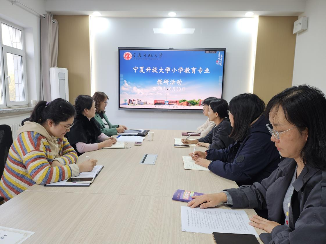 为进一步夯实小学教育专业教学质量,推进专业实践环节改革落地,及时传递国家开放大学最新教学指导精神,2025年10月30日,宁夏开放大学小学教育专业在金凤校区四楼会议室召开专题教研会议。小学教育专业全体课程责任教师参会,会议围绕教学工作总结安排、实践环节改革研讨及培训精神传达三大议题展开,为后续专业教学工作明确方向、凝聚共识。