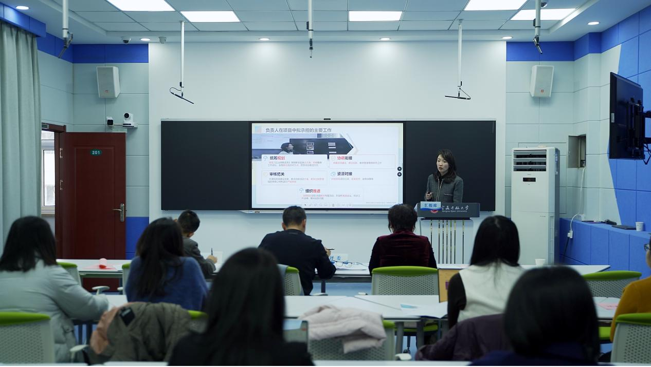 为深入推进开放教育教学改革,持续加强内涵建设,提升人才培养质量,1月12日上午,学校在金凤校区六楼智慧教室召开2025年度教学实施团队建设项目评审会,会议由远程学习支持服务中心主任杨晓燕主持。